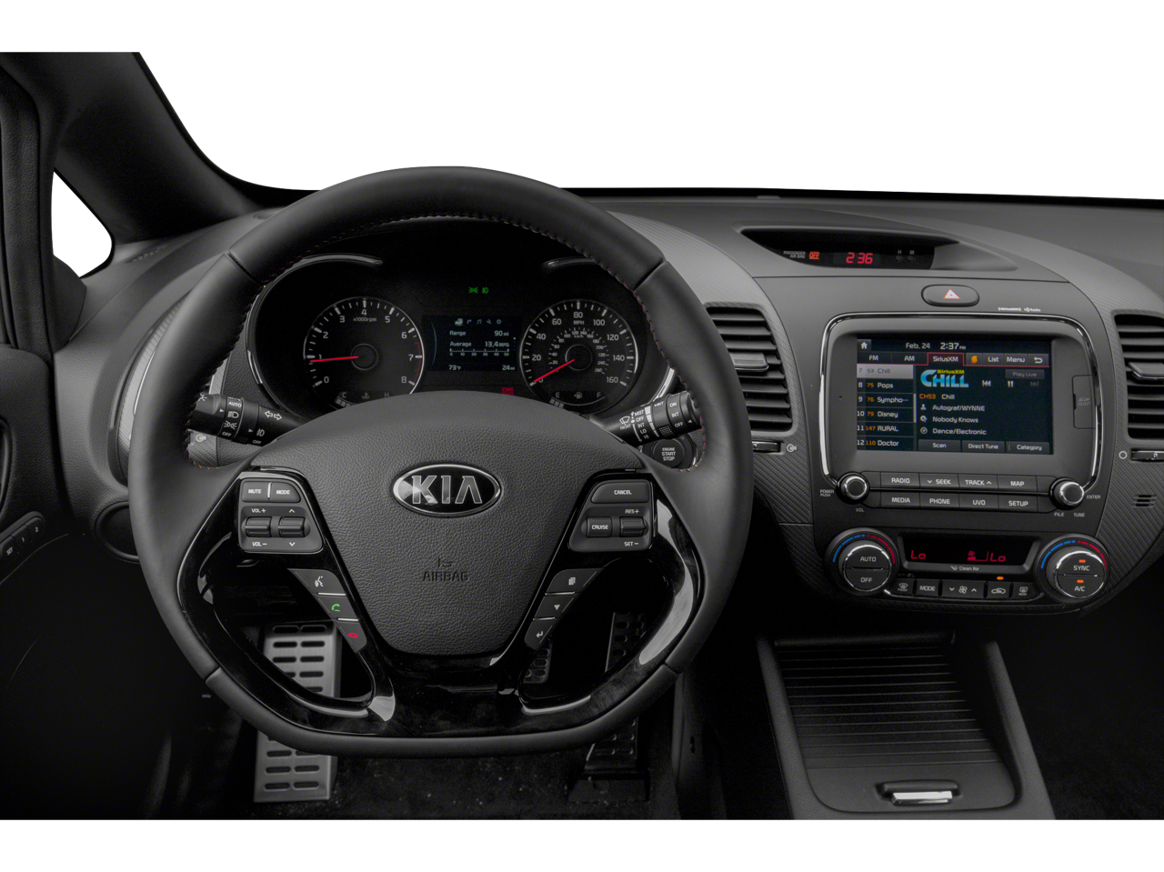 LX Popular Package (Auto-On/Off Headlights, Cruise Control, Dual Illuminated Visor Vanity Mirrors, Front Passenger Seat Back Map Pocket, Front Sliding Armrest, Illuminated Ignition & Glovebox, Overhead Map Light, Premium Cloth Seat Trim, Radio: UVO eServices Infotainment AM/FM/MP3, Rear Center Armrest w/Cupholders, and Sunglass Holder), 4 Speakers, 4-Wheel Disc Brakes, ABS brakes, Air Conditioning, AM/FM radio: SiriusXM, AM/FM/CD/MP3 Audio System, Brake assist, Bumpers: body-color, Carpeted Floor Mats, CD player, Cloth Seat Trim, Delay-off headlights, Driver door bin, Driver vanity mirror, Dual front impact airbags, Dual front side impact airbags, Electronic Stability Control, Front anti-roll bar, Front Bucket Seats, Front Center Armrest, Front wheel independent suspension, Heated door mirrors, Illuminated entry, Low tire pressure warning, Occupant sensing airbag, Outside temperature display, Overhead airbag, Panic alarm, Passenger door bin, Passenger vanity mirror, Power door mirrors, Power steering, Power windows, Rear window defroster, Remote keyless entry, Security system, Speed control, Split folding rear seat, Steering wheel mounted audio controls, Tachometer, Telescoping steering wheel, Tilt steering wheel, Traction control, Trip computer, Variably intermittent wipers, and Wheels: 15 x 6.0 Steel w/Full Wheel Covers.