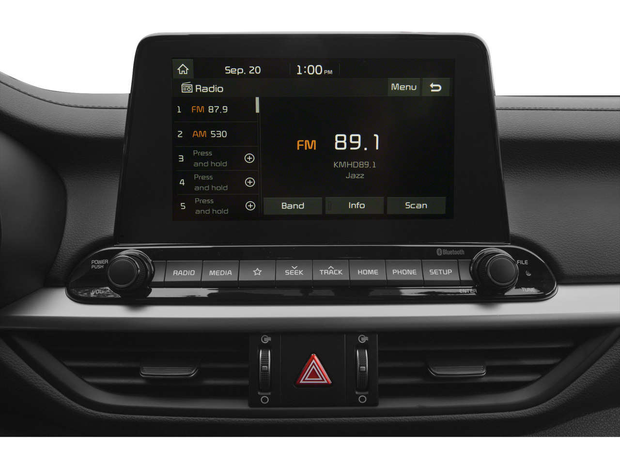 - Radio: UVO Play AM/FM/MP3 Audio System -inc: 4 speakers, 8" touch-screen, rearview monitor, Android Auto, Apple CarPlay, USB/Auxiliary input jack and Bluetooth® wireless technology