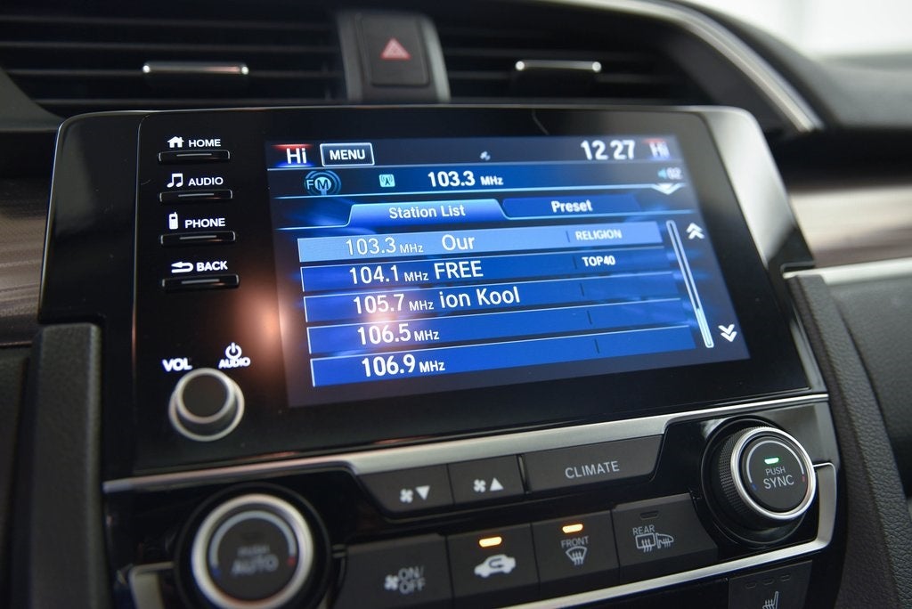 - Radio: 180-Watt AM/FM/HD/SiriusXM Audio System -inc: 8 speakers, 7-inch display w/high-resolution electrostatic touch-screen, knob and hard keys for primary controls, customizable feature settings, Bluetooth® HandsFreeLink, Bluetooth® streaming audio, radio data system (RDS), speed-sensitive volume compensation (SVC), 1.5-amp USB smartphone/audio interface in front console, 1.0-amp USB audio interface port in center console, HondaLink, Apple CarPlay integration, Android Auto integration, SMS text message function, fin-type roof-mounted antenna and illuminated steering wheel-mounted controls