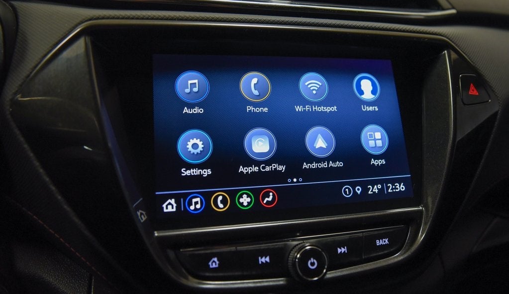 - Audio system, Chevrolet Infotainment 3 system 7" diagonal color touchscreen, AM/FM stereo. Additional features for compatible phones include: Bluetooth® audio streaming for 2 active devices, voice command pass-through to phone, Apple CarPlay and Android Auto capable. (8" screen when (ZL3) Convenience Package and (ZL5) Driver Confidence Package or (SOR) Confidence II Package are ordered.)