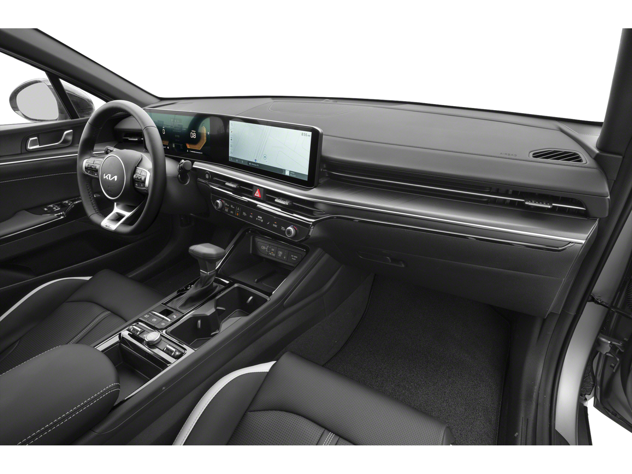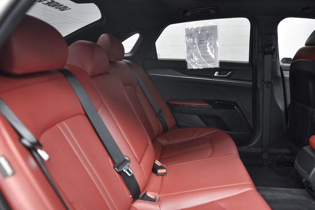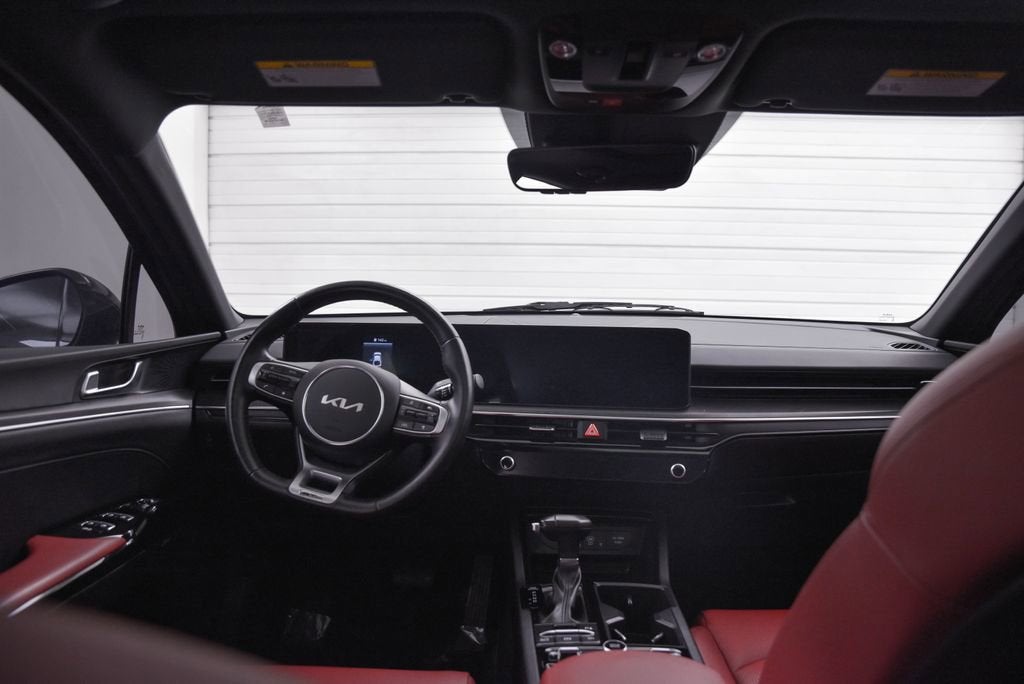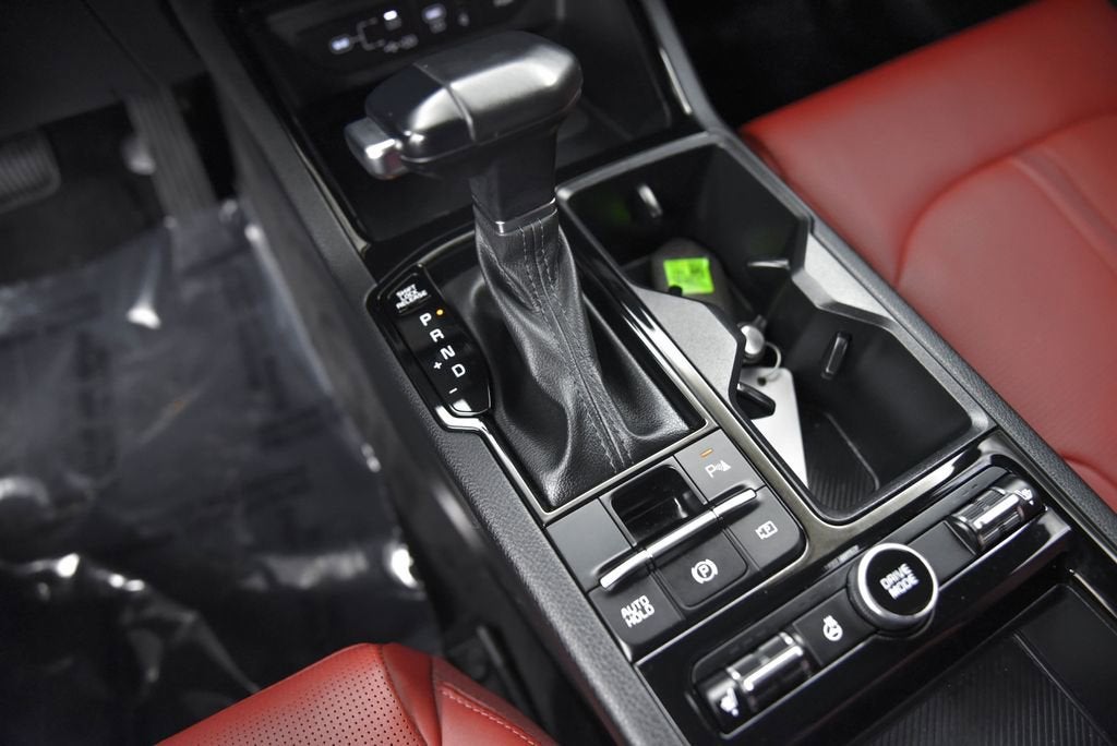 GT-Line Premium Package (Active Sound Design, Bose Premium Audio, LED Interior Lighting, and Panoramic Sunroof), GT-Line Red Interior Package (SynTex Seat Trim), 4-Wheel Disc Brakes, 6 Speakers, ABS brakes, Air Conditioning, Alloy wheels, AM/FM radio: SiriusXM, Auto High-beam Headlights, Automatic temperature control, Brake assist, Bumpers: body-color, Cargo Tray, Carpeted Floor Mats, Delay-off headlights, Driver door bin, Driver vanity mirror, Dual front impact airbags, Dual front side impact airbags, EC Mirror w/Homelink, Electronic Stability Control, Emergency communication system: Kia Connect (includes 1 year free trial), Four wheel independent suspension, Front anti-roll bar, Front Bucket Seats, Front Center Armrest, Front dual zone A/C, Front fog lights, Front reading lights, Fully automatic headlights, Heated door mirrors, Heated Front Bucket Seats, Heated front seats, Heated steering wheel, Illuminated entry, Knee airbag, Leather Shift Knob, Leather steering wheel, Low tire pressure warning, Navigation System, Occupant sensing airbag, Outside temperature display, Overhead airbag, Overhead console, Panic alarm, Passenger door bin, Passenger vanity mirror, Power door mirrors, Power driver seat, Power steering, Power windows, Radio data system, Radio: AM/FM Audio System, Rear anti-roll bar, Rear seat center armrest, Rear side impact airbag, Rear window defroster, Remote keyless entry, Security system, Speed control, Speed-sensing steering, Split folding rear seat, Sport steering wheel, Steering wheel mounted audio controls, Tachometer, Telescoping steering wheel, Tilt steering wheel, Traction control, Trip computer, Turn signal indicator mirrors, Variably intermittent wipers, and Wheels: 18 x 7.5J Gloss Black Machined Finish Alloy.